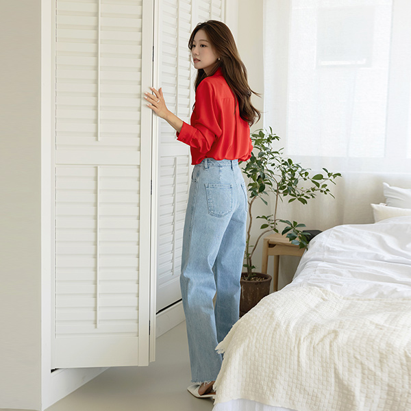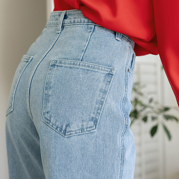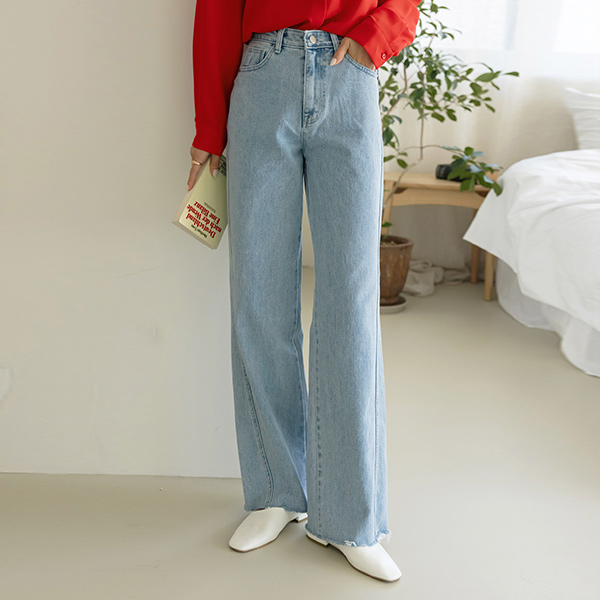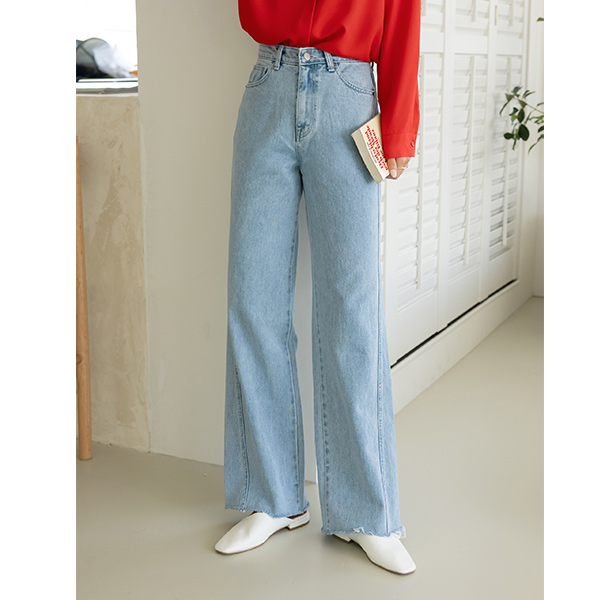 斜線 ライン ナチュラル カッティング ワイド デニム パンツ