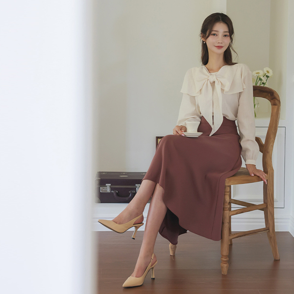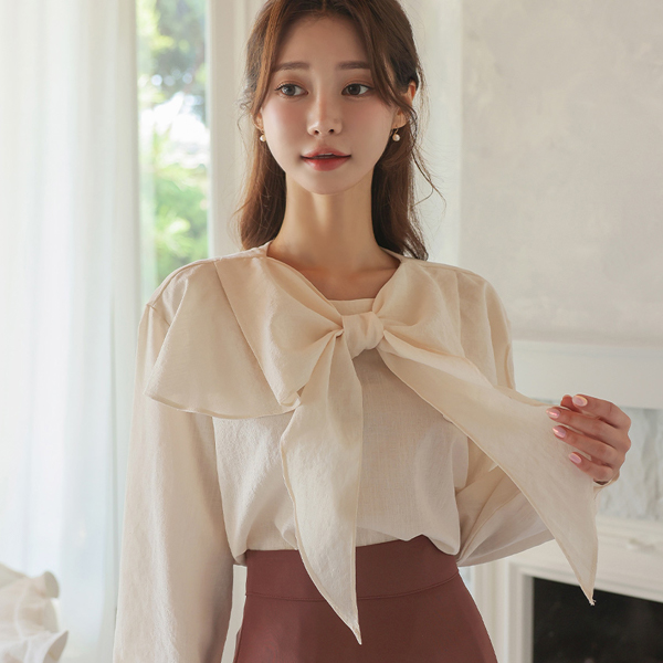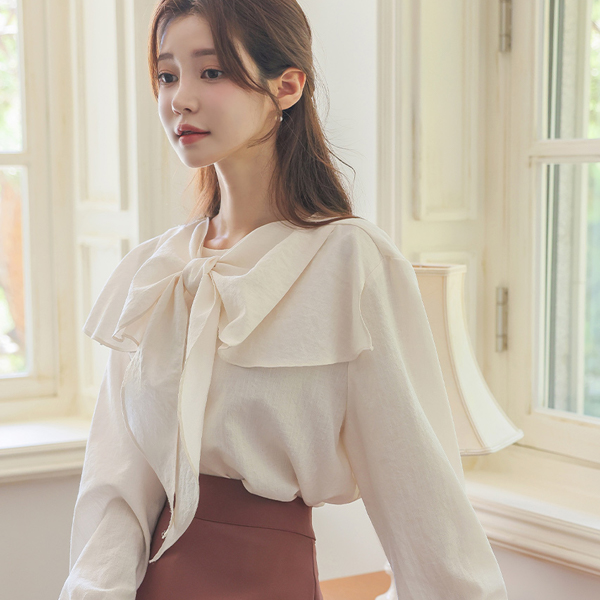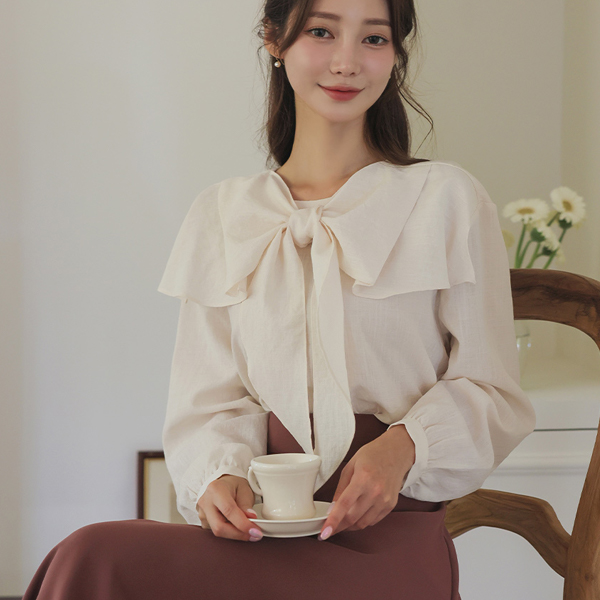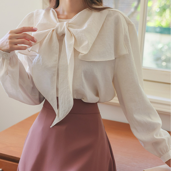 ビッグ フリル カラー リボン しめくくり ブラウス