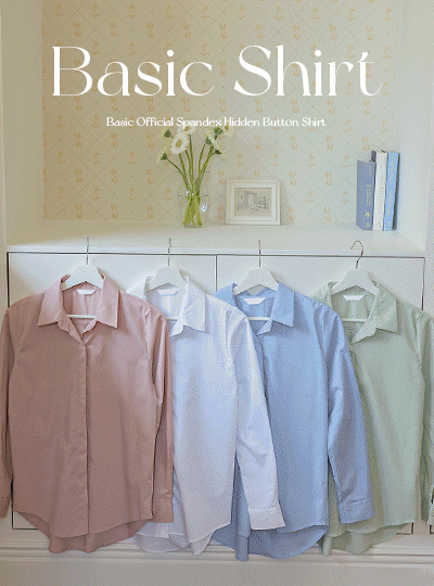 ベーシック 公式 弾力 隠しボタン シャツ