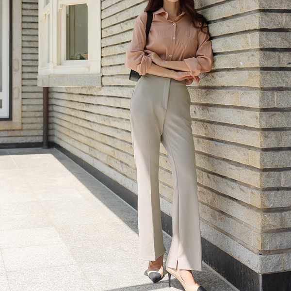 細かく美しい 弾力 裾上 スリット ブーツカット スレックス
