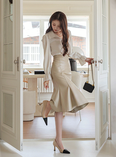 Eco レザー ハイウエスト 切開 マーメイド スカート