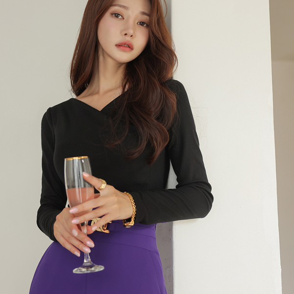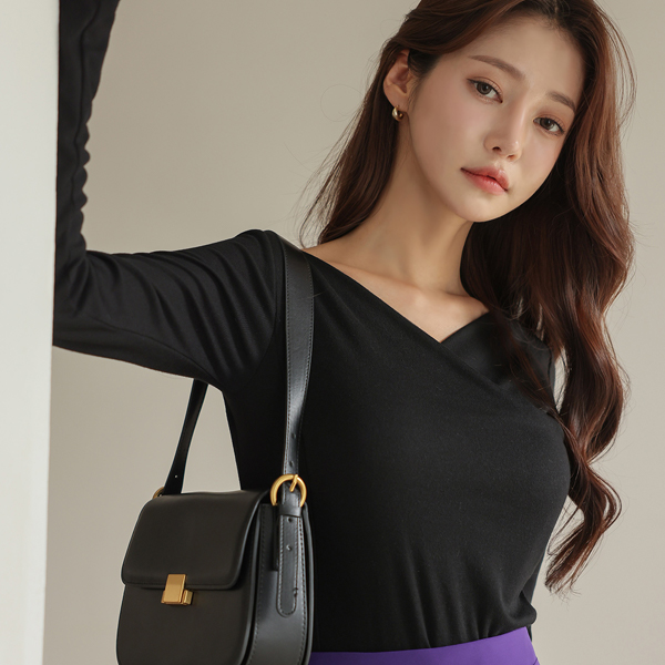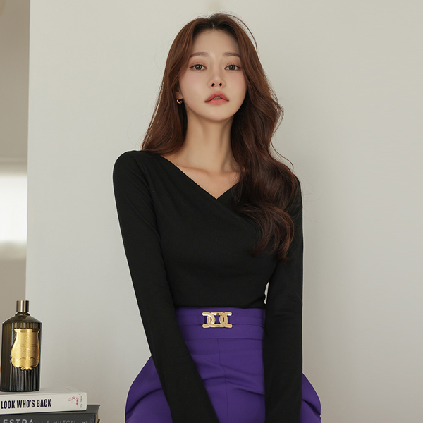Vネック ラップ スリム 弾力 ティーシャツ