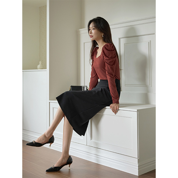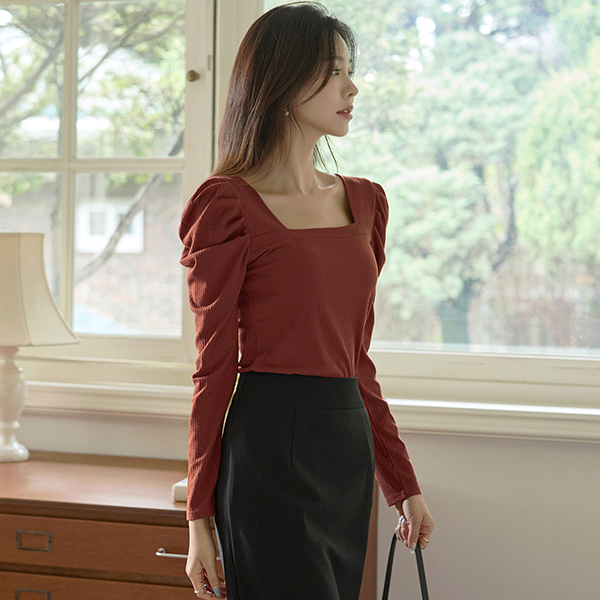エレガンス パフ 袖 スクエアネック コール天 ティーシャツ
