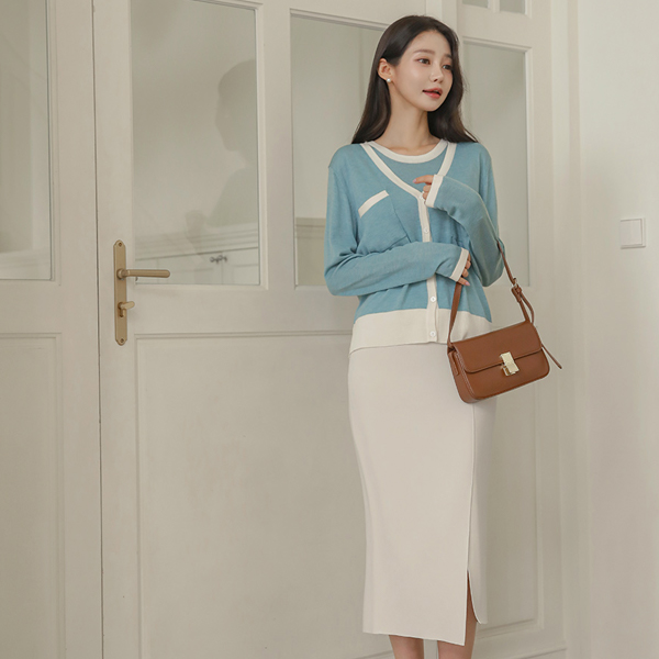 配色 裏地 ニット カーディガン&袖なし SET