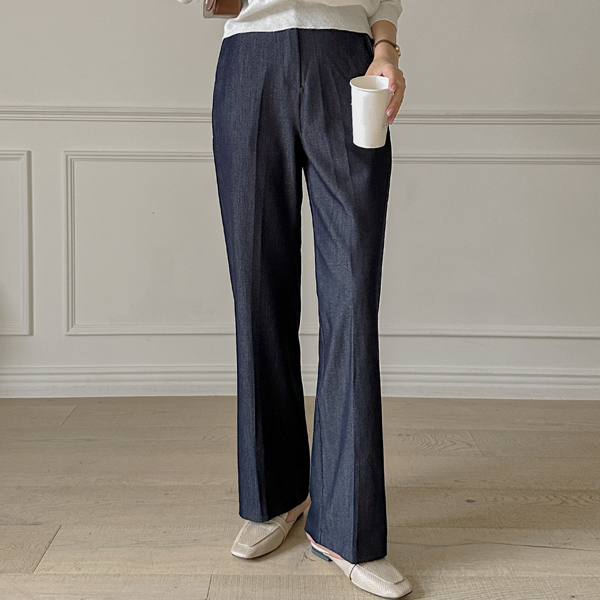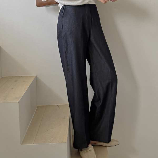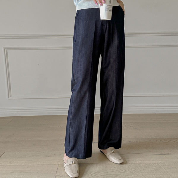 生地 隠れた バンディング ストレートフィット デニム スレックス