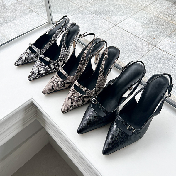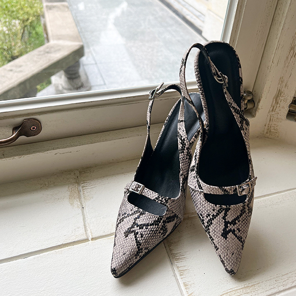 ユニーク じゃび斑紋 ベルト スリングバック ヒール