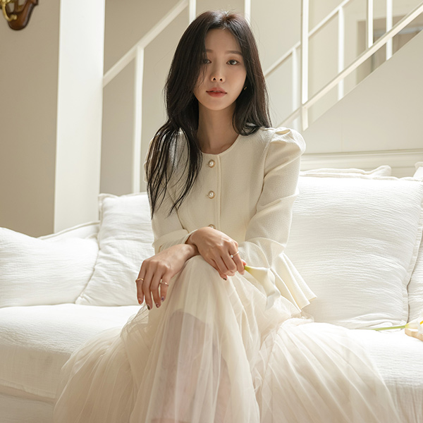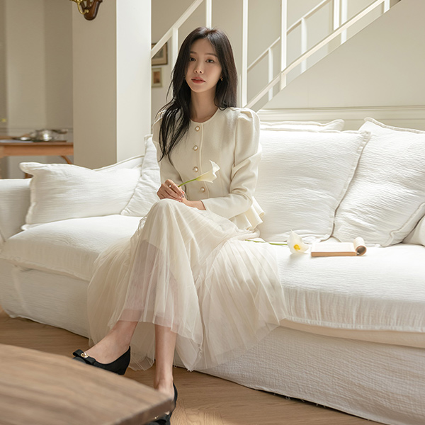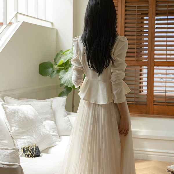 シャルマン ペプラム ライン 真珠 ボタン ブラウス