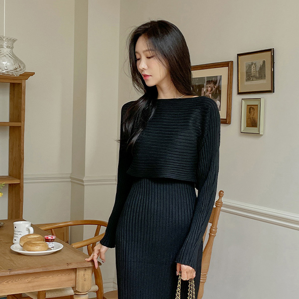ソフト コール天 ニット (セット) ワンピース