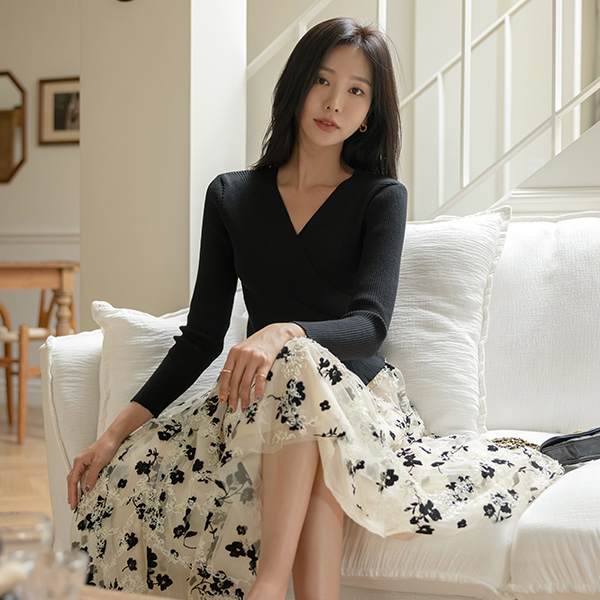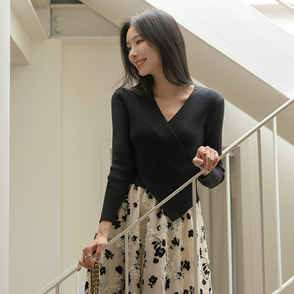 ラップスタイル ニット レイヤード ワンピース