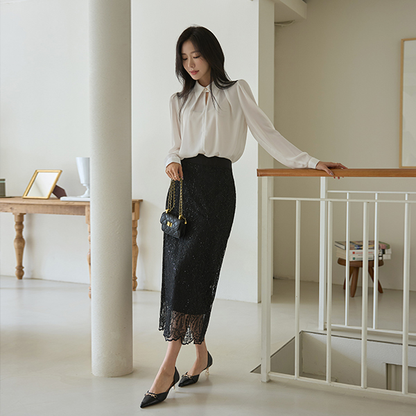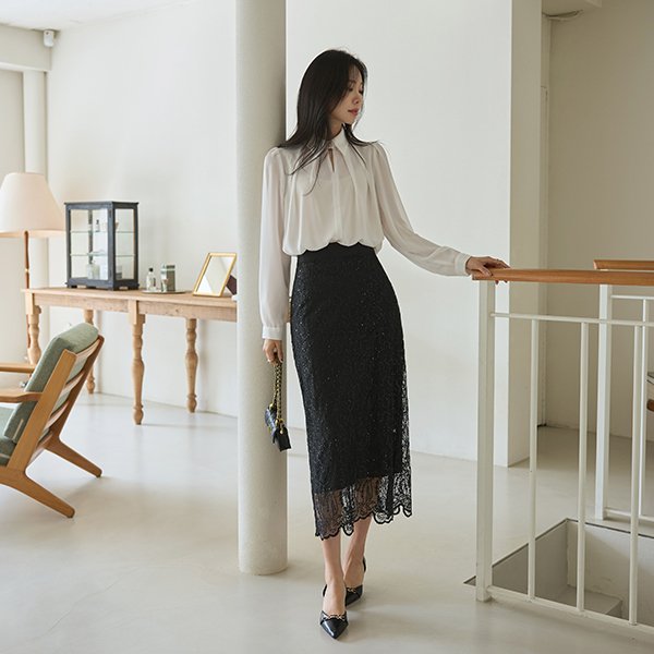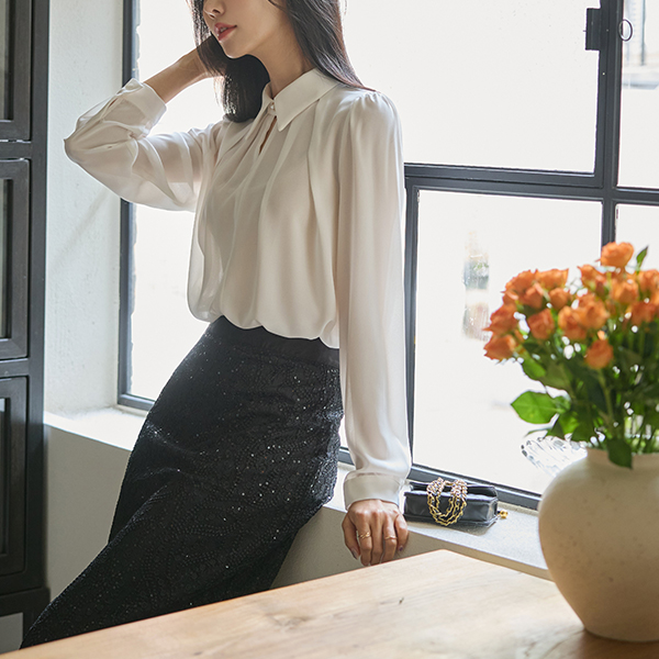 じょうじょう 真珠 홀 ネックライン ブラウス Ⅱ