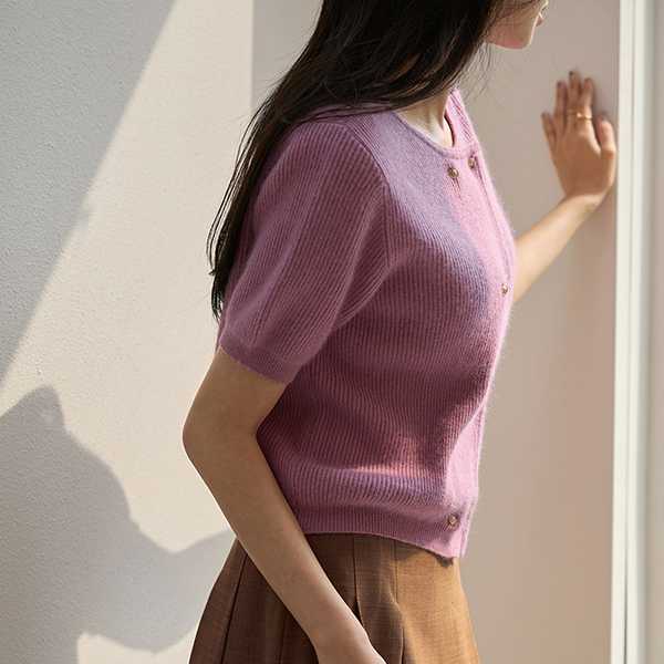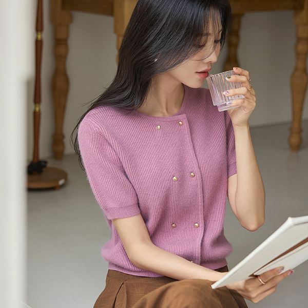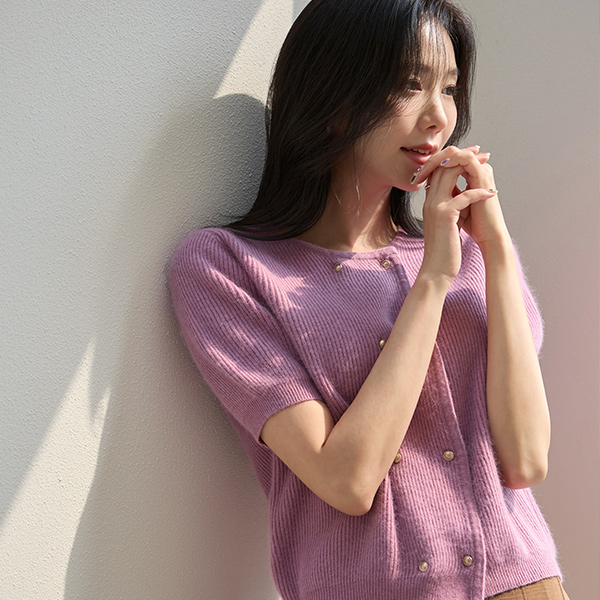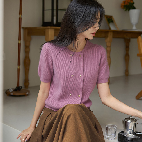 ソフト ラクーン ダブル ゴールドボタン ニット カーディガン