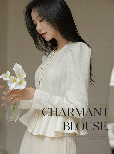 シャルマン ペプラム ライン 真珠 ボタン ブラウス