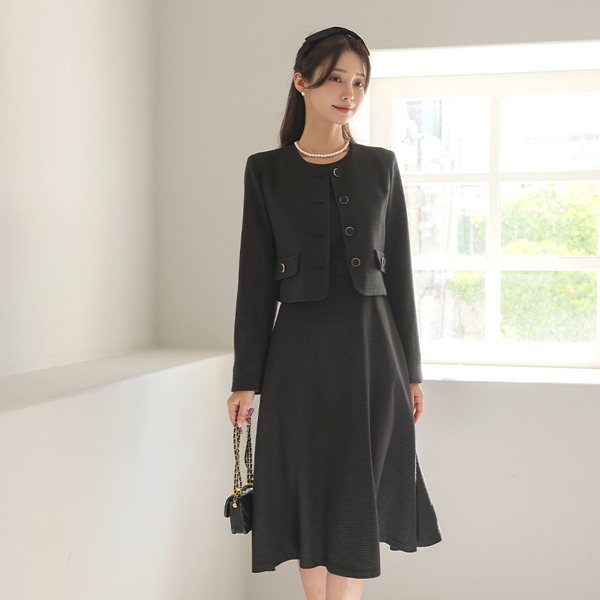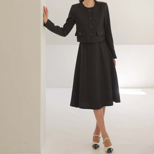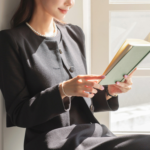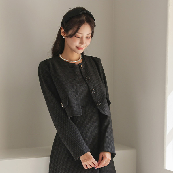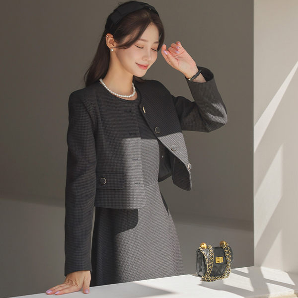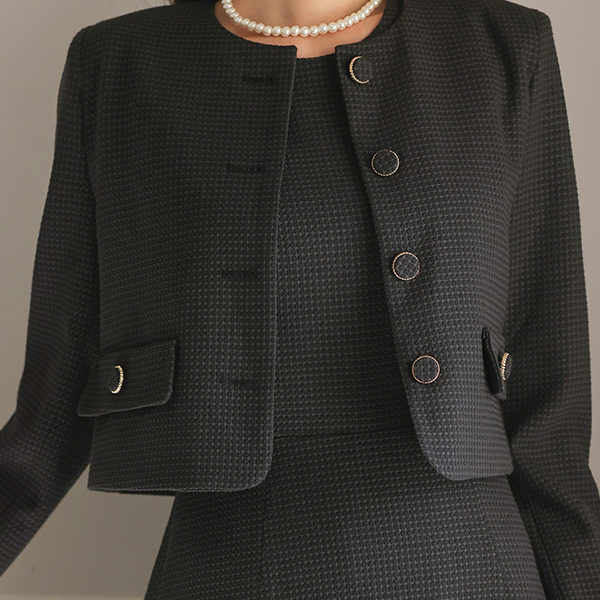 ラウンドネック ゴールドわ ツイード ジャケット