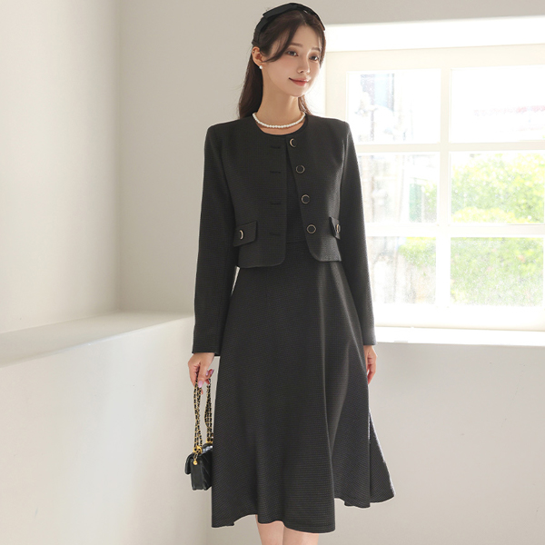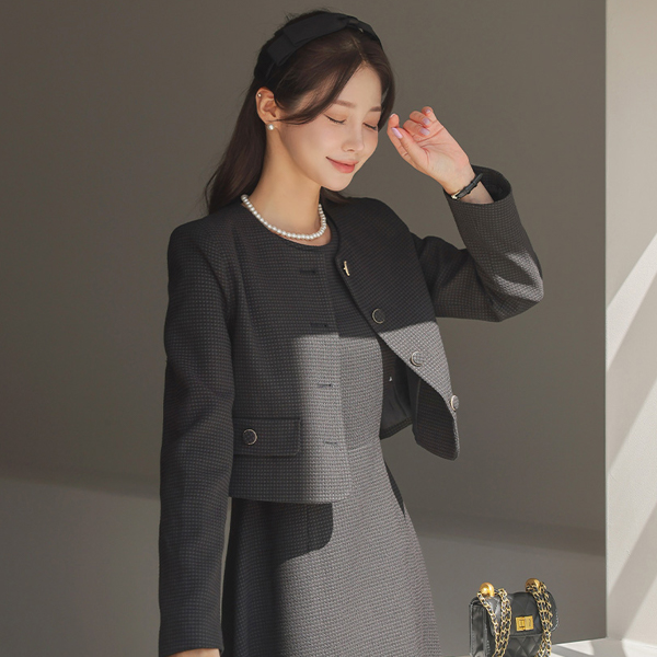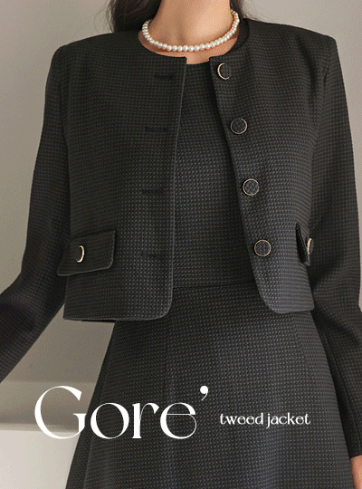 ラウンドネック ゴールドわ ツイード ジャケット