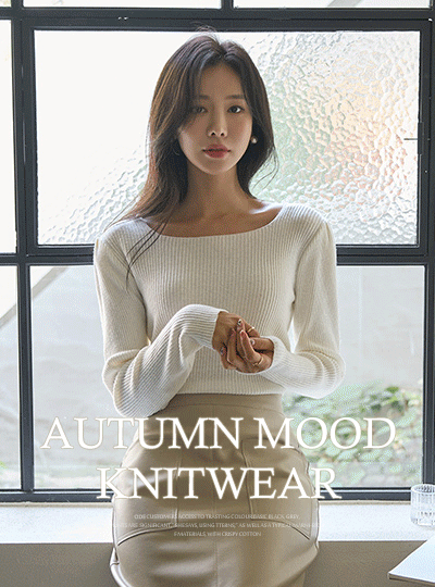 パフショルダー スクエアネック ニット