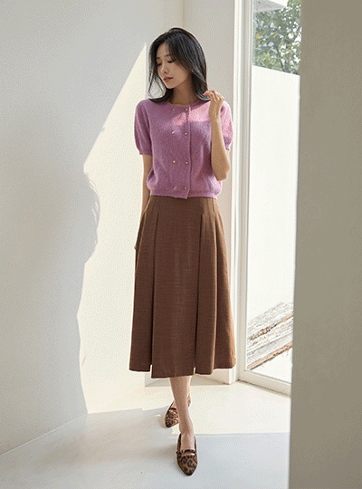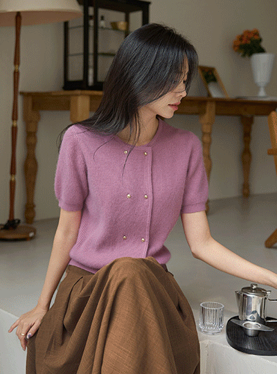 ソフト ラクーン ダブル ゴールドボタン ニット カーディガン