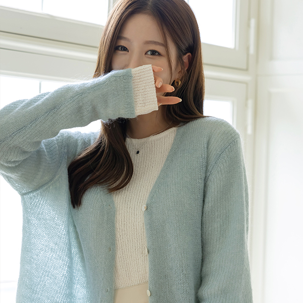 秋 ムード カラー きれいなフィット モヘア ウール カーディガン