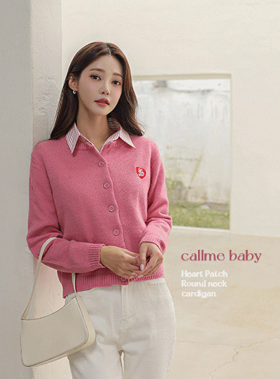ハート パッチ ラウンドネック カーディガン