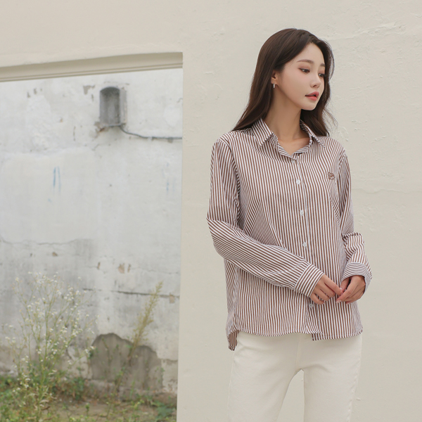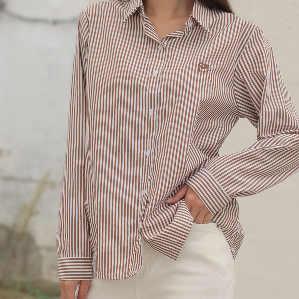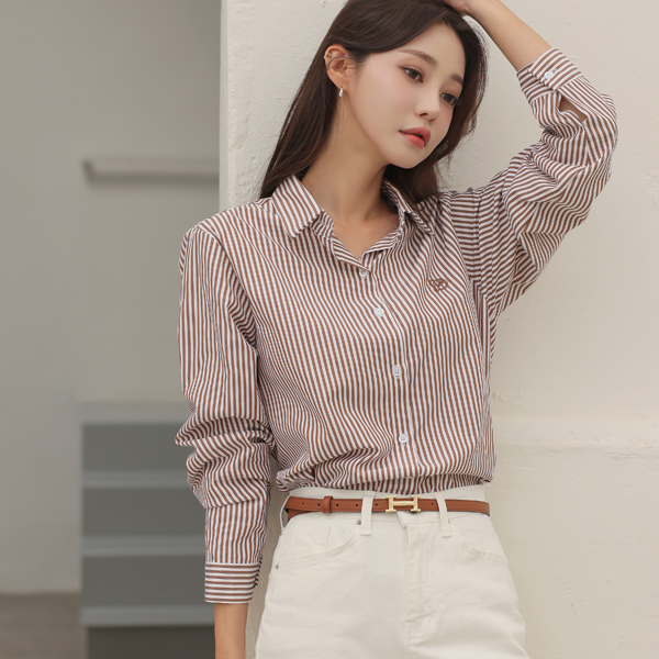 LOVE ハート 刺繍 ストライプ シャツ