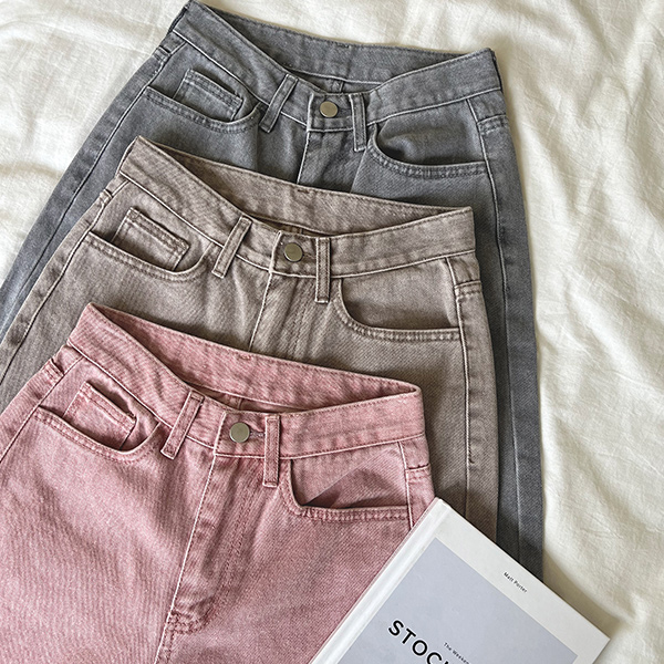 秋 カラー 長い脚 ワイドフィット デニム パンツ
