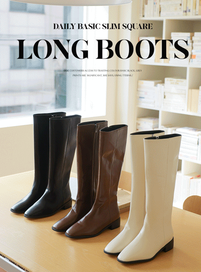デーリー ベーシック スリム スクエア ロング ブーツ