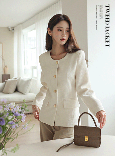 クラシック マット ゴールド ボタン ツイード ジャケット