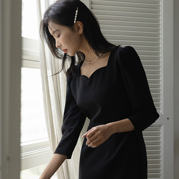 ロマンチック ハート スクエアネック パフ袖 ワンピース