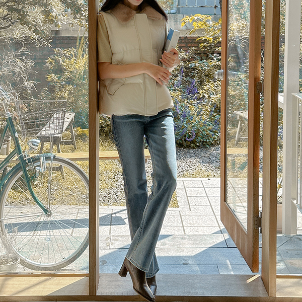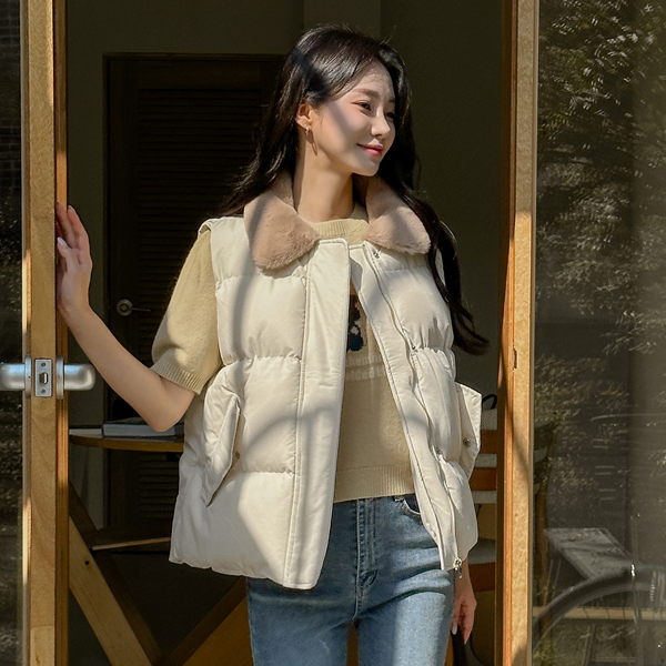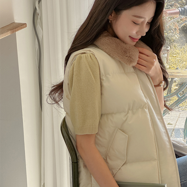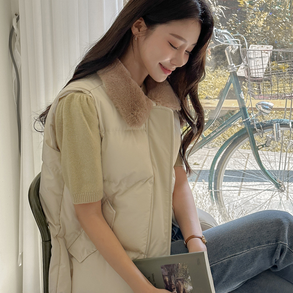 ぽかぽかした 配色 ファー カラー バディング ベスト