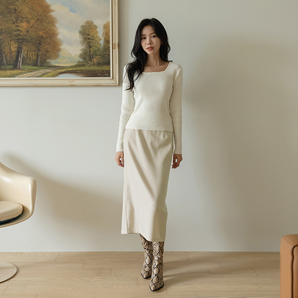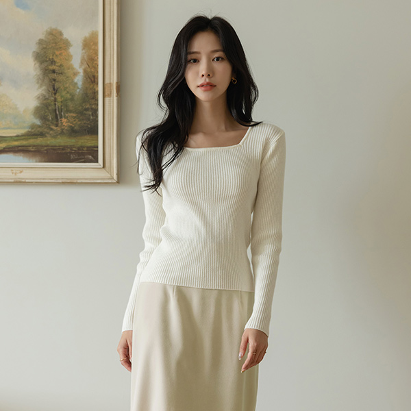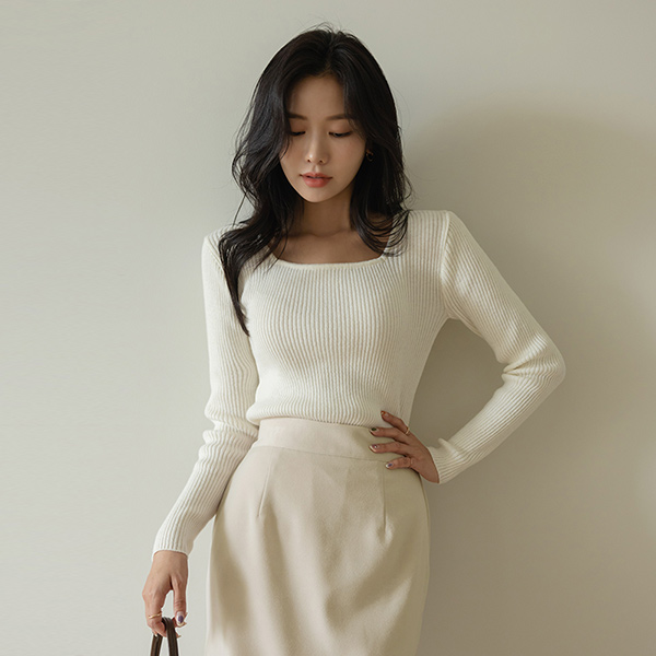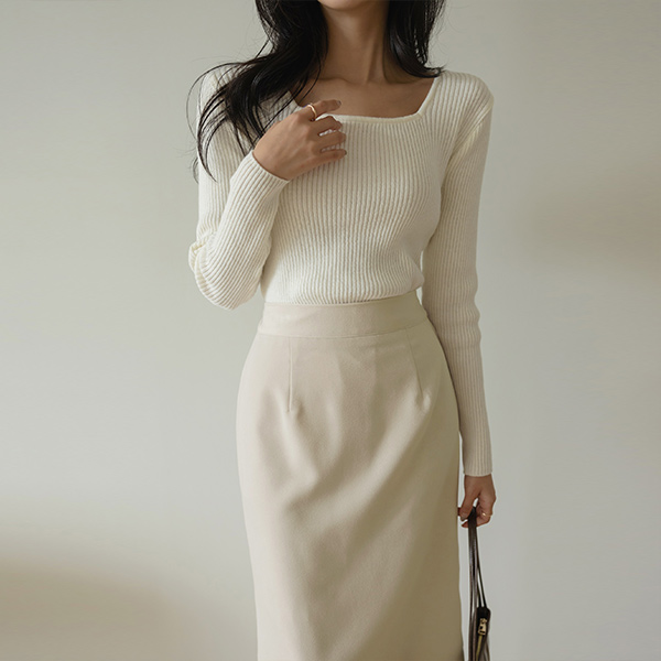 スクエアネック シンプル コール天 カシミア ニット