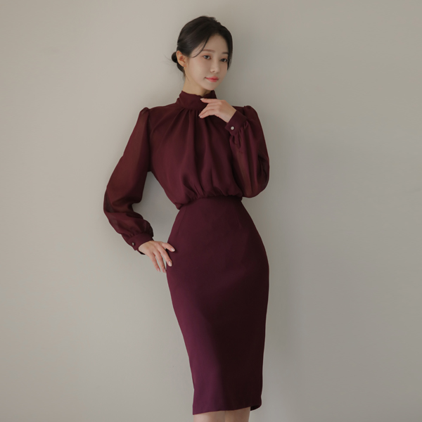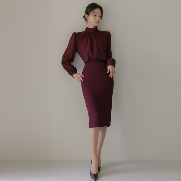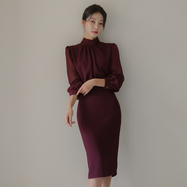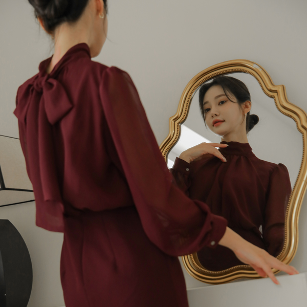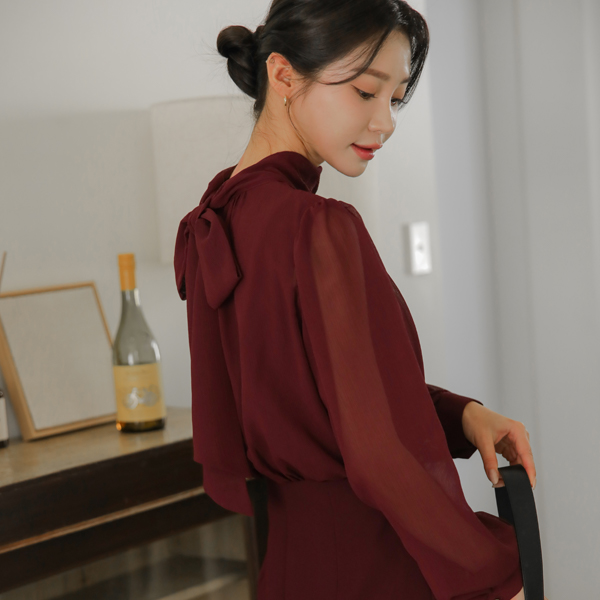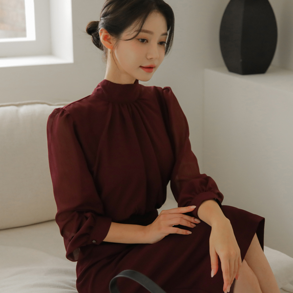シフォン スカーフ ハイネック シースルー Hライン ワンピース