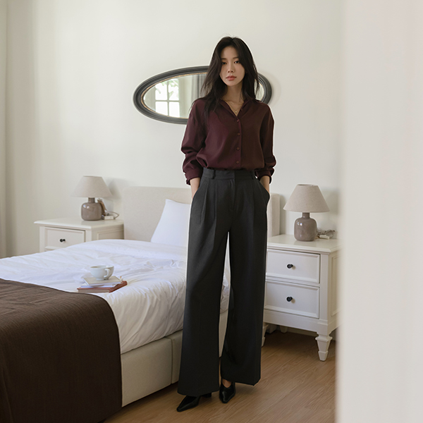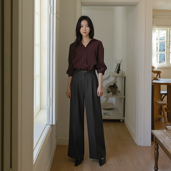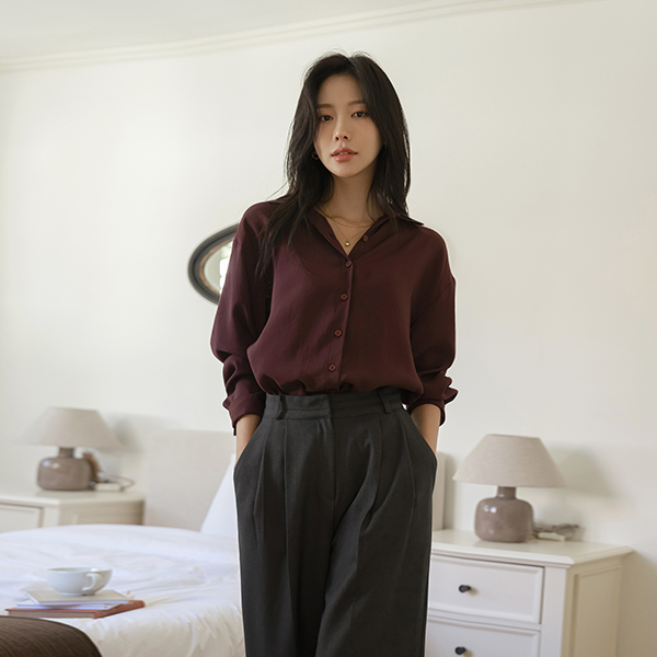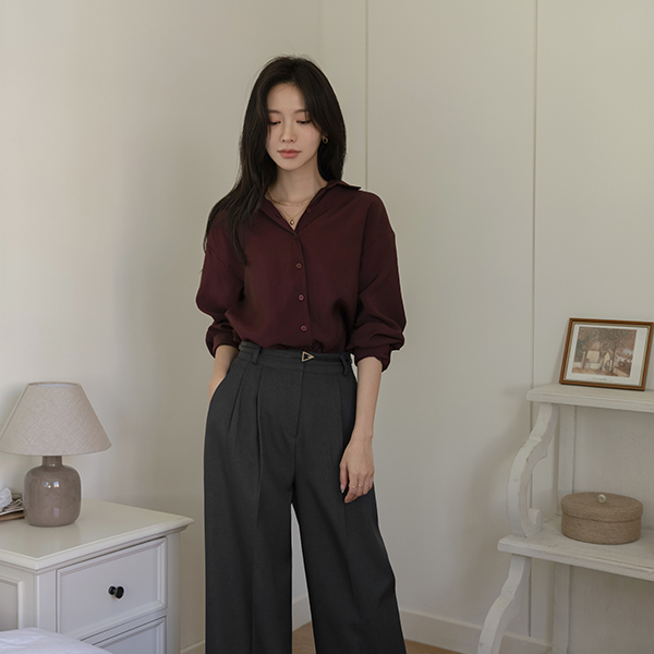 モダン カラーネック 秋 カラー シャツ ブラウス