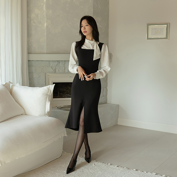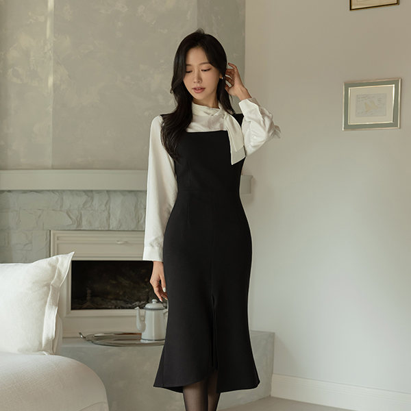 裾上 スリット マーメイド 分厚い 袖なし 弾力 ワンピース