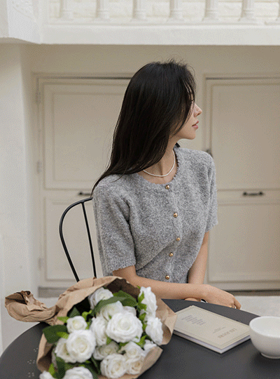 クラシック ゴールド ボタン Teddy ブークレ ウール ニット カーディガン
