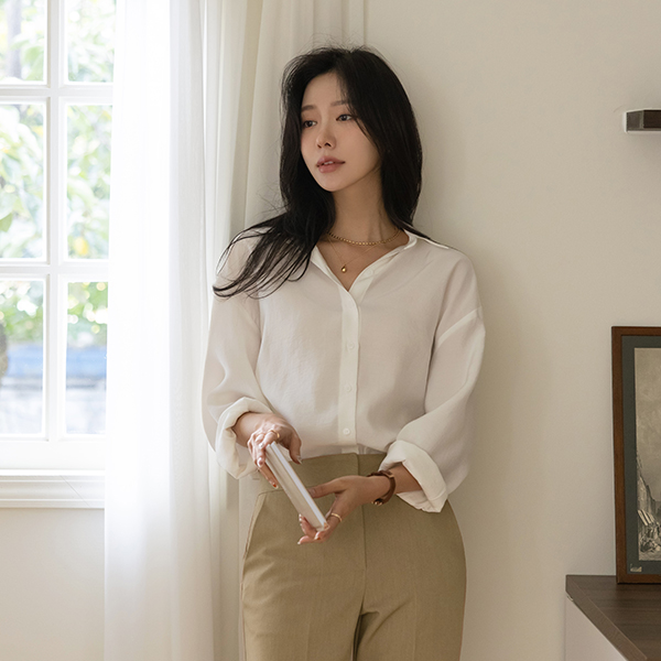 モダン カラーネック 秋 カラー シャツ ブラウス