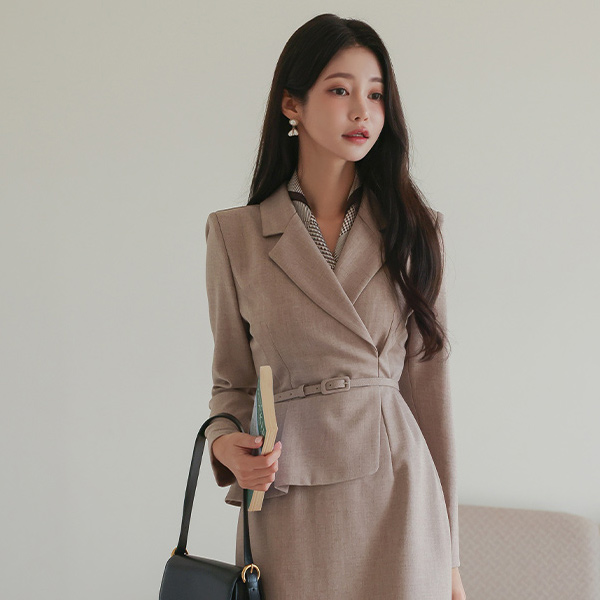 クラシック ラップ カラー アンバランス ペプラム Hライン ワンピース