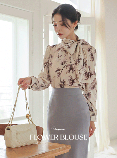 エレガンス 花柄 捺染 スカーフネック ブラウス