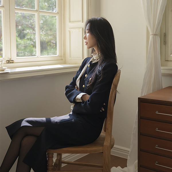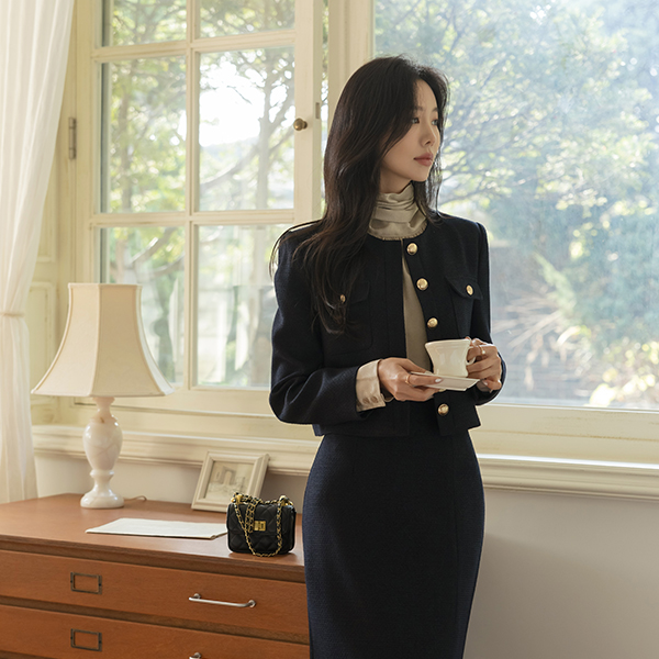 ツイード きらめく糸 ゴールド ボタン Set-up ジャケット