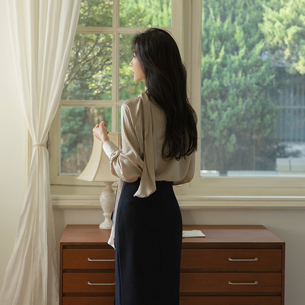 きらっと スカーフネック シャーリング ブラウス