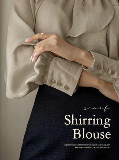 きらっと スカーフネック シャーリング ブラウス