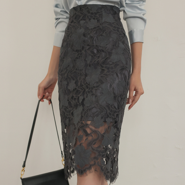 Aria サテン 配色 レイス スカート(fall)