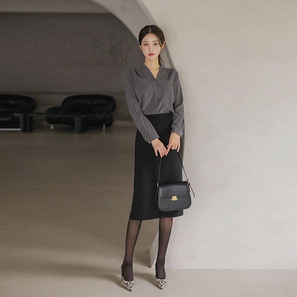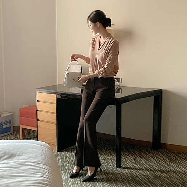 Lucia スエード タッチ ブイネック ブラウス Ⅱ