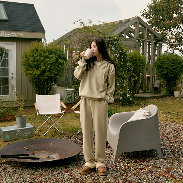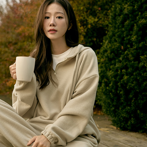 ソフト Peach 起毛 フード ジップアップ&조거팬츠 (セット)