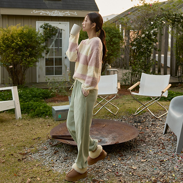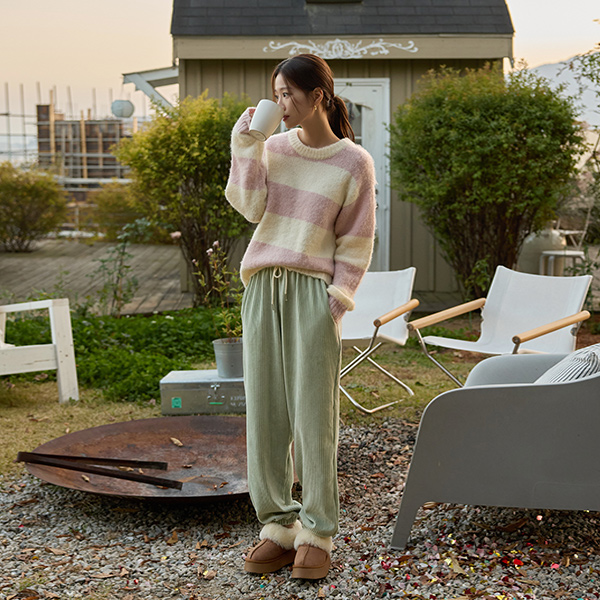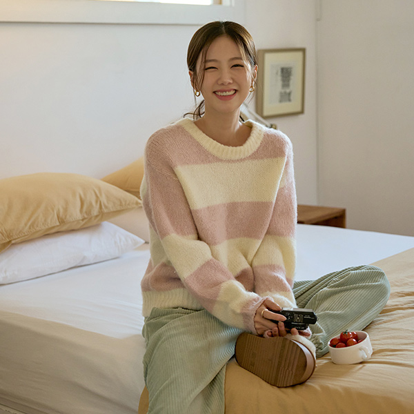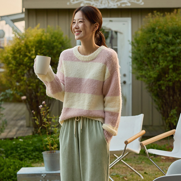 綿菓子 ストライプ ソフト ウール ニット