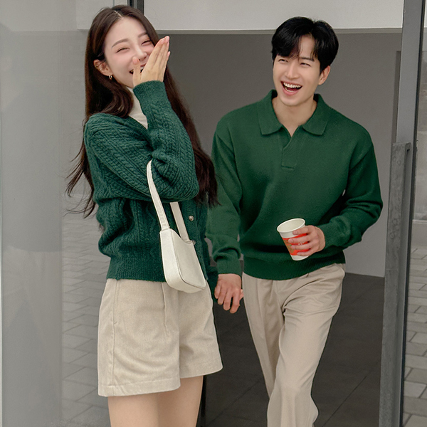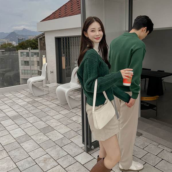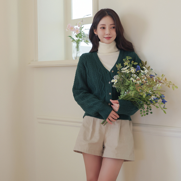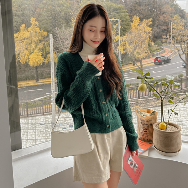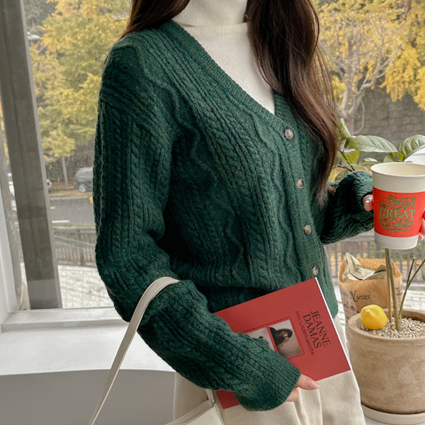 ディープカラー ブイネック ケーブル ニット カーディガン