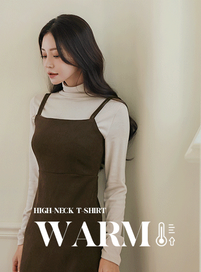 ウォーム シャーリング ディテール ハイネック 弾力 ティーシャツ