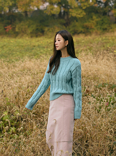 ロマンチック カラー ケーブル パタン ニット