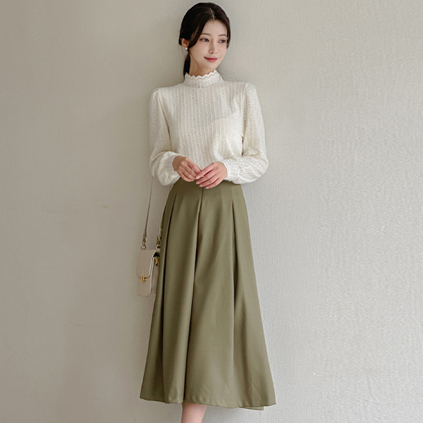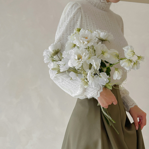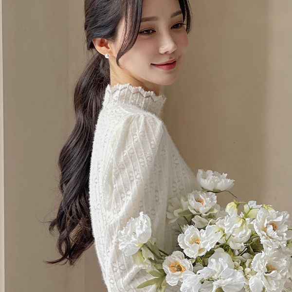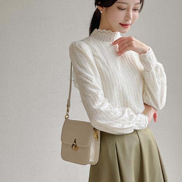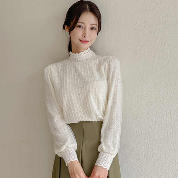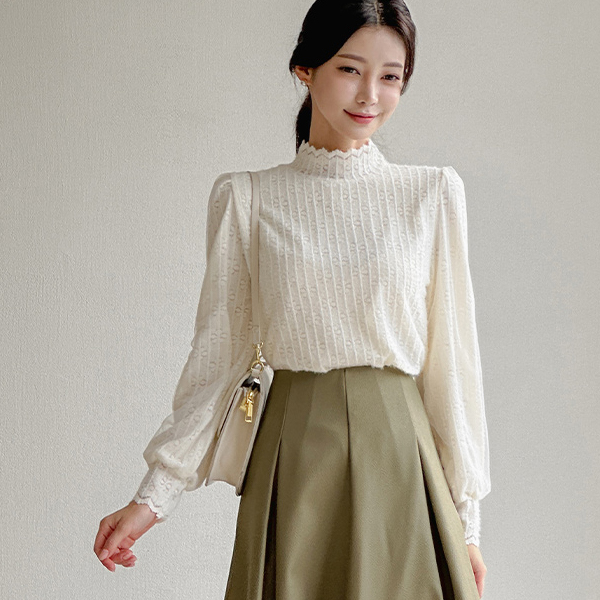 ハイネック レイス シフォン パフ 袖 ブラウス