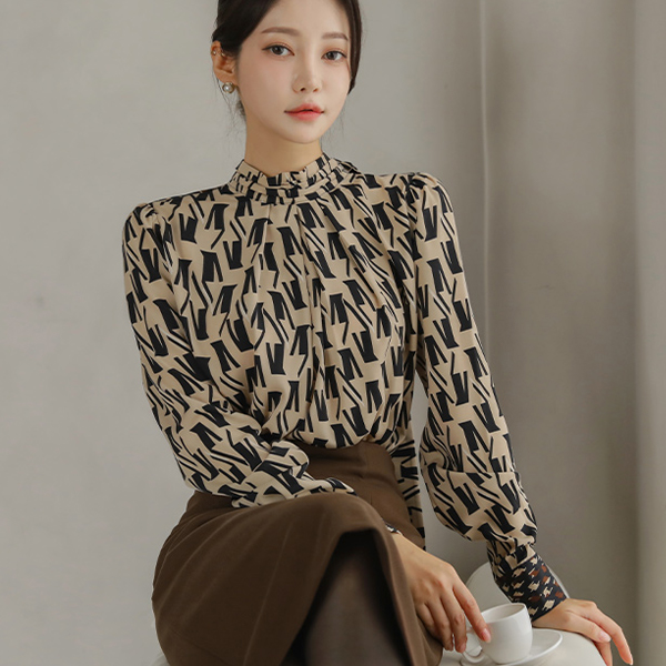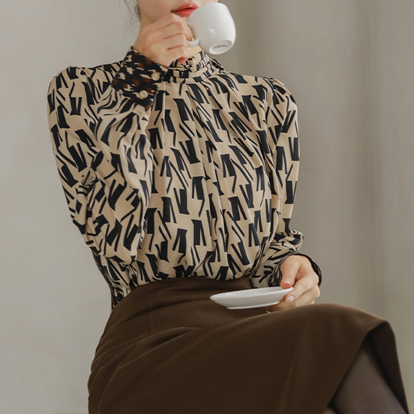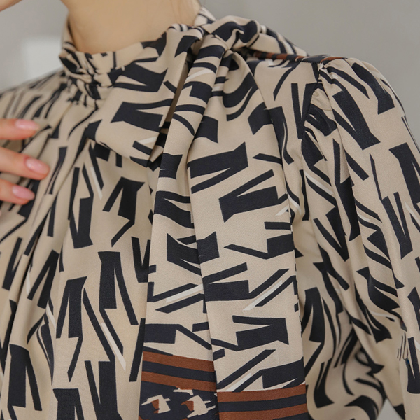 V パタン プリーツネック スカーフ ブラウス