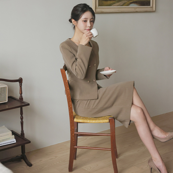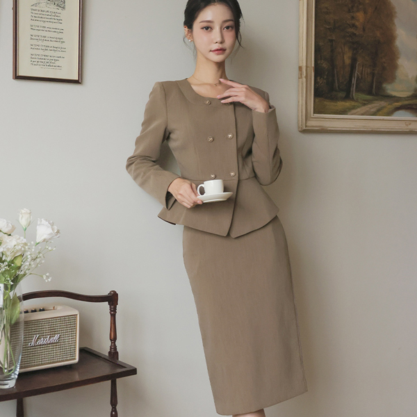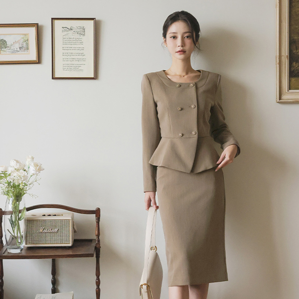 ODE スクエア ラウンドネック ダブルボタン ペプラム ジャケット