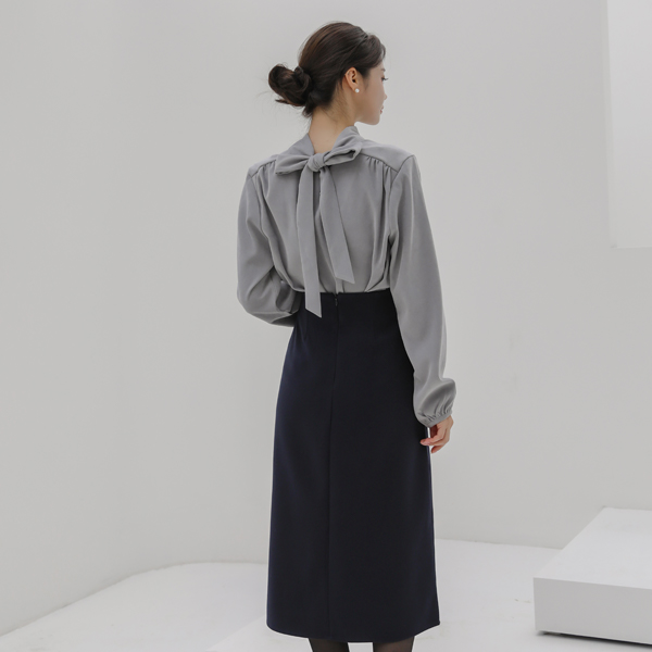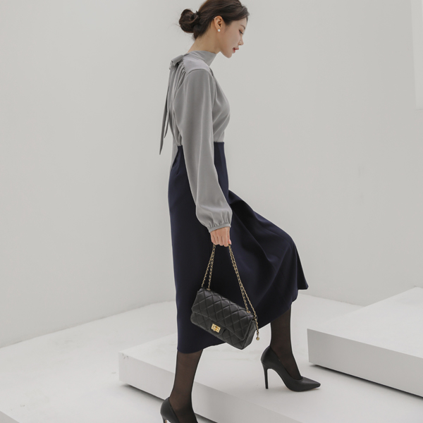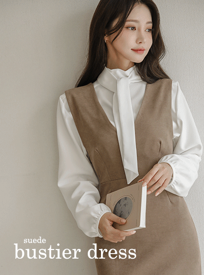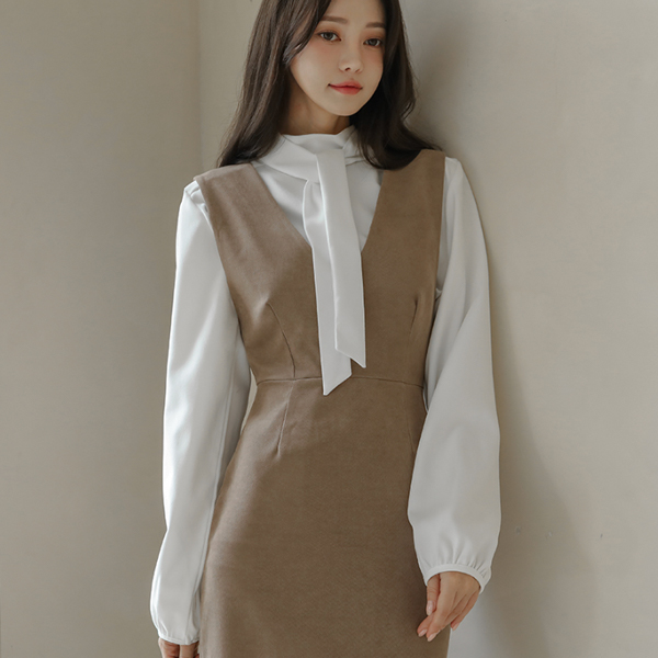 ツイル スエード テクスチャ ブイネック ビュスチエ ワンピース